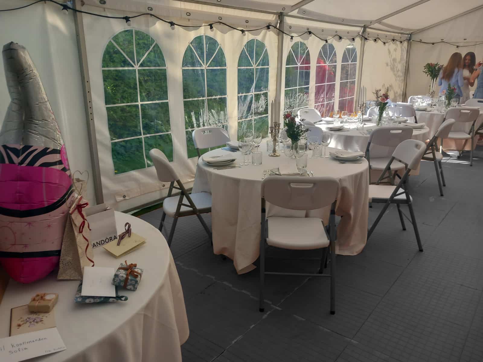 Vi har været ekstremt glade for at denne løsning til vores søns konfirmation. Der er mange ting der skal kombineres på sådan en travl dag, men at man kan slå telt, gulv, stole, borde og meget mere sammen, gjorde det hele meget nemmere.