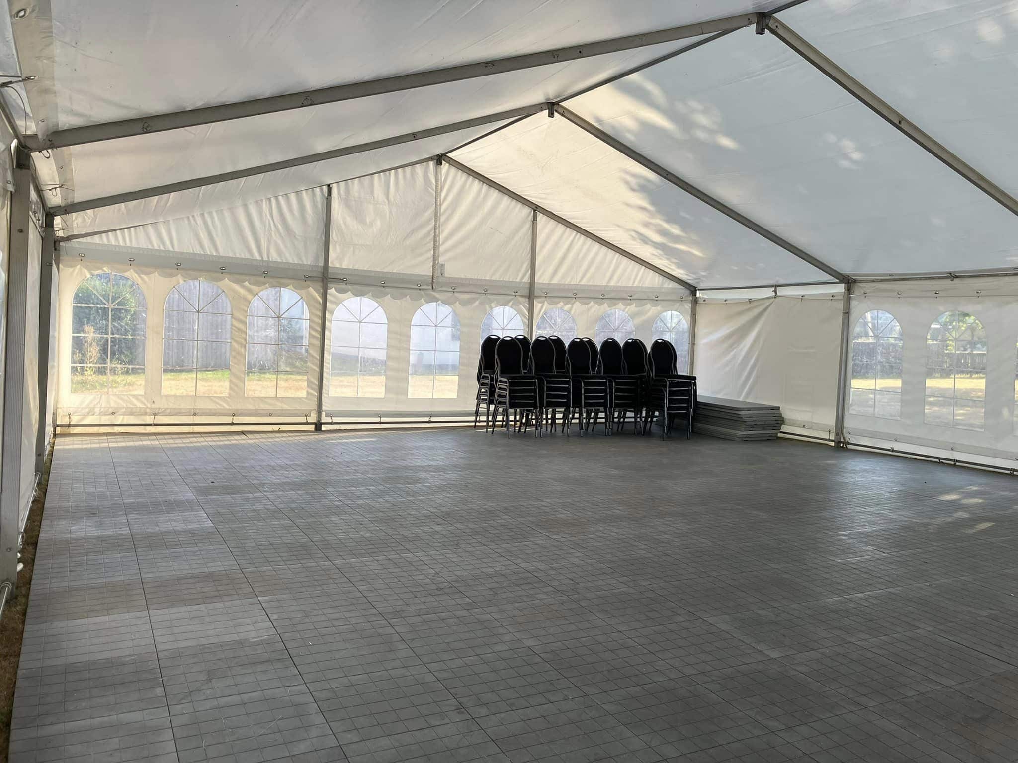 - Gulv, borde og stole til festtelt.
